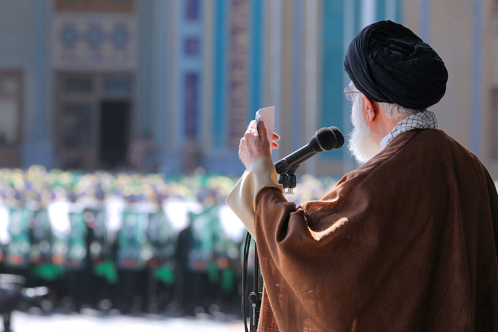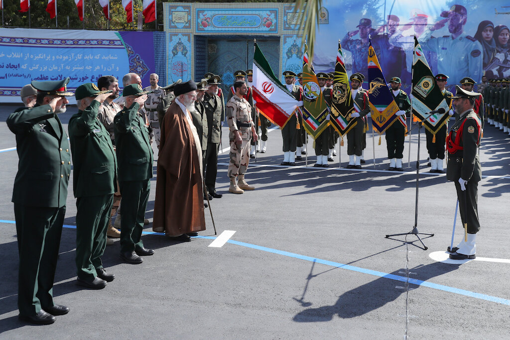 Gott sei Dank haben unsere Streitkräfte ihre Prüfungen gut bestanden. Es gab eine Zeit, in der die Streitkräfte nur eine Zurschaustellung von Kleidung, Insignien und militärischen Formationen waren, aber unsere Streitkräfte sind nicht so. Unsere Streitkräfte haben wichtige Prüfungen bestanden und sind mit Ehre aus diesen hervorgegangen. Die wichtigste dieser Prüfungen war der achtjährige, aufgezwungene Krieg. Sie haben unserem Land einen Krieg aufgezwungen – eine Art von Krieg, der wirklich ein Weltkrieg war. Und die letzte Prüfung, natürlich bis heute, war der Kampf gegen die Fitna [Zwietracht] von DAESH [ISIS], der ebenfalls sehr wichtig war.